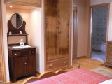 Con cama de matrimonio de 1,50 cm., aparador, armario empotrado vestidor y mesillas.
